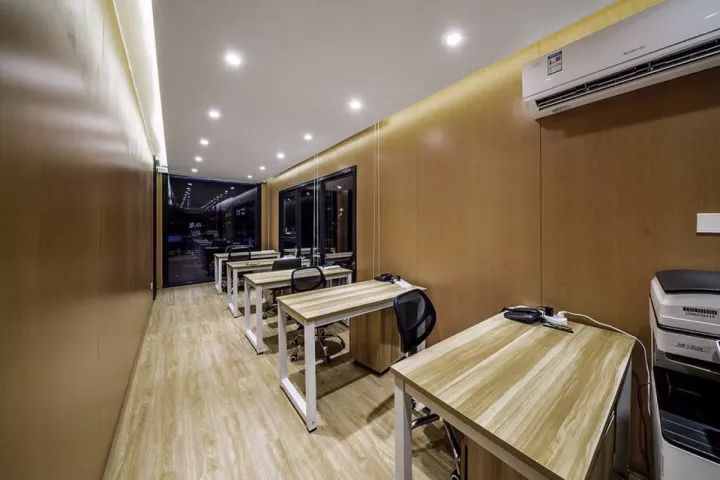 接待区由2个海运集装箱连通而成,用的结构措施突破了集装箱开间的限制。